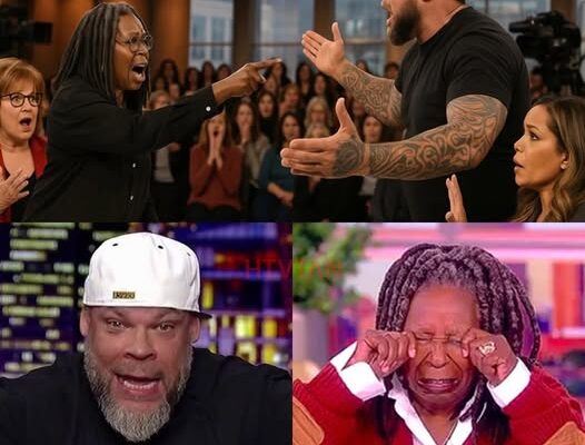 Live From ABC: It’s Verbal Mortal Kombat The segment devolved faster than a Reddit thread on vaccine conspiracies. Goldberg stood. Tyrus stood. Joy Behar tried to stand but remembered her knees don’t do that anymore. Sunny Hostin attempted a “let’s calm down” hand gesture, which was immediately rejected by both parties and possibly the laws of physics.Then came the moment that will live in daytime infamy: Whoopi Goldberg, pointing directly at Tyrus, shouted, “You are a walking Facebook comment section!” Tyrus, unfazed, replied: “And you’re the human embodiment of a Huffington Post op-ed!” An audience member fainted. A producer threw up in a potted plant. One intern tried to crawl inside a Keurig machine. Sources say ABC legal staff began furiously Googling “defamation insurance” as Tyrus dropped an unbleeped F-bomb so loud it disrupted satellite feeds in three time zones and possibly caused Tucker Carlson to blink.