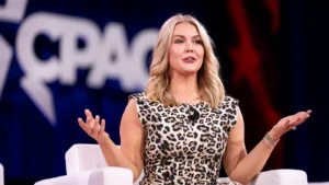 The audience gasped. Leavitt blinked in surprise, momentarily thrown off balance. Kimmel didn’t let up. “You’re defending press restrictions while sitting on a talk show built on free speech. That’s not irony, that’s hypocrisy. And no punchline I write will ever be funnier than that.” The crowd erupted into applause and cheers, as Kimmel’s words cut through the tension and exposed Leavitt’s stance for what it was: a defense of censorship disguised as patriotism. For a moment, it seemed as though the room was electric with the palpable energy of someone finally calling out the spin and lack of accountability in the political discourse. Leavitt’s Struggle: Dismantling the Spin Leavitt, now visibly rattled, tried to regain control. “Excuse me?” she snapped, but the edge in her voice couldn’t mask the growing discomfort. She shifted in her seat, clearly struggling to continue the conversation with the same scripted answers she had planned. Kimmel wasn’t finished. As Leavitt attempted to deflect with a response about “middle America values,” Kimmel cut her off with one of his most scathing lines of the night: “I’ve seen more authenticity in a ChatGPT answer. You’re not here to talk. You’re here to dodge. And frankly, it’s exhausting.