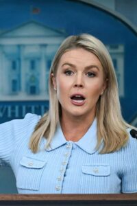 Karoline was no stranger to the spotlight. She had made her name by calling out the establishment, pushing against what she considered the liberal media’s biases, and speaking her mind no matter the consequence. But as she walked onto the stage, dressed in crisp white, chin slightly raised, there was something else in the air. It wasn’t just tension; it was something more deliberate. She wasn’t here to charm. She wasn’t here to play along with the late-night theater of it all. Karoline had come with a purpose—and it was to tear it all down.