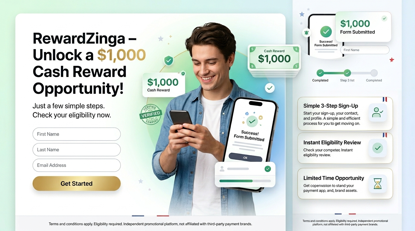 RewardZinga is an independent promotional platform. This offer is not affiliated with, sponsored by, or endorsed by Cash App or any other payment platform. Eligibility requirements, entry conditions, and terms apply.